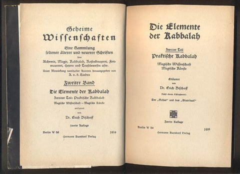 BISCHOFF, ERICH: DIE ELEMENTE DER KABBALAH. - 1920.