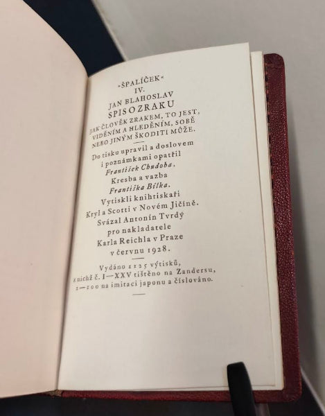 Praha; Raichl; 1928. Špalíček sv. IV. Vytiskli Kryl a Scotti v Novém Jičíně Na Moravě. 199 s.; ilustrace ve front. a návrh vazby FRANTIŠEK BÍLEK. Do tisku upravil, doslovem a poznámkami opatřil František Chudoba, na patit. jeho rukopisné věnování s podpisem, dat. 9. srpna 1928.