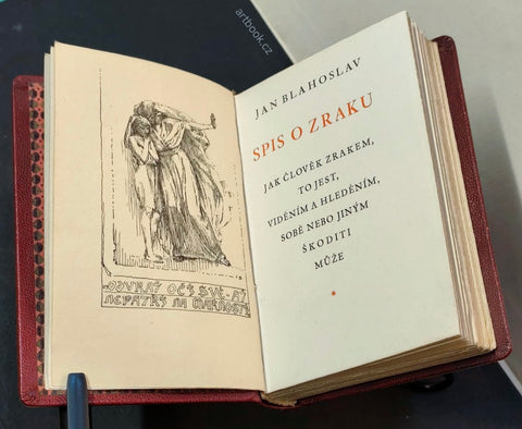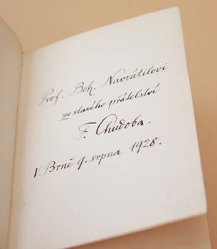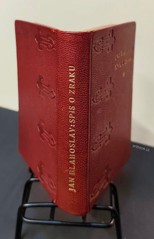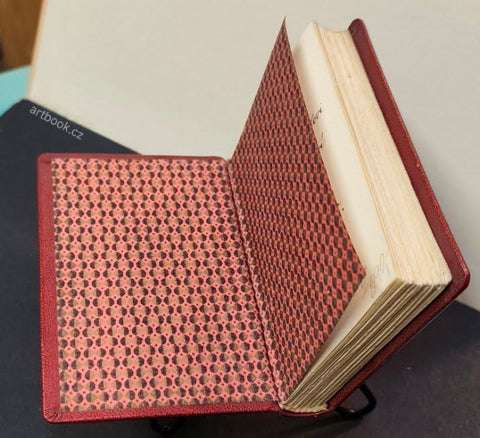 Pův. celokožená vazba (svázal A. TVRDÝ); slepotisková ražba; zlatá vrchní ořízka, zdobený předsádkový pap. 125x84 mm.