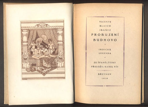 Indická legenda. Břevnov, Josef Ot. Matička, 1919. Ze španělštiny přeložil Karel Vít. 63 s., leptem vyzdobil STANISLAV KULHÁNEK, typograf. úpravu provedl a předsádku i vazbu navrhl A. CHVÁLA, vytiskla knihtiskárna J. Skaláka a spol. v Praze. Pap. vazba. 205x130 /Ate/