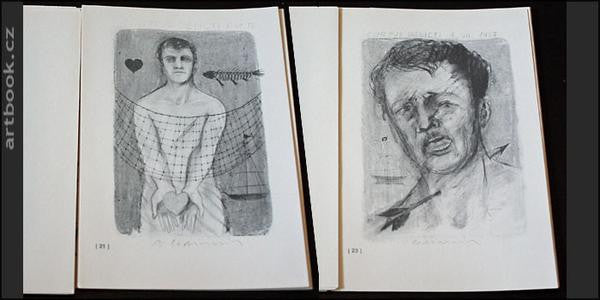 Edice Explosionalismus. Vydal Spolek přátel Vladimíra Boudníka, 1974. S laskavým dovolením pana J. Perglera provedl výběr L. Merhaut, zpracoval a graficky upravil OLDŘICH HAMERA. (2) 29 (5) s., 21 celostr. čb reprodukcí Boudníkových kreseb tištěných po jedné straně na volných listech. 200 výtisků. Volné listy (28) v pův. pap. obálce. 210x145 Dobře zachováno.