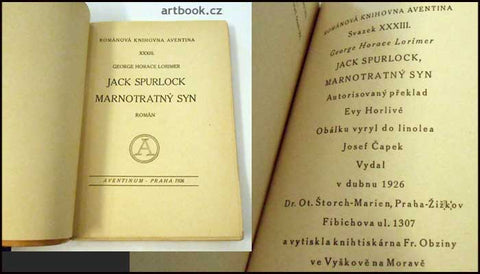 Čapek - LORIMER; G. H.: JACK SPURLOCK; MARNOTRATNÝ SYN. - 1926. 2500 CZK = cca. 92 EUR