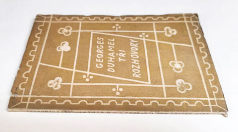 Praha, Štorch-Marien, 1921. Aventinum. Knihy dnešku sv. 5. Přeložili Miroslav Rutte a Eva Ruttová. Obálka (lino) a nakl. zn. v titulu (lino) JOSEF ČAPEK. 82 s. Pův. brož. 215x135 Nerozřezáno, při horním okraji přední obálky 2,5 cm natrženo, bez ztráty pap.