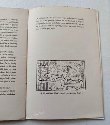 Praha, Kmen, 1937. Písmem Bodoni vytiskla knihtiskárna Orbis na Král. Vinohradech. 12 (1) s., il. ve front. autor, závěrečná il. O. Mrkvička. Pův. brož. 205x135 Dobře zachováno.