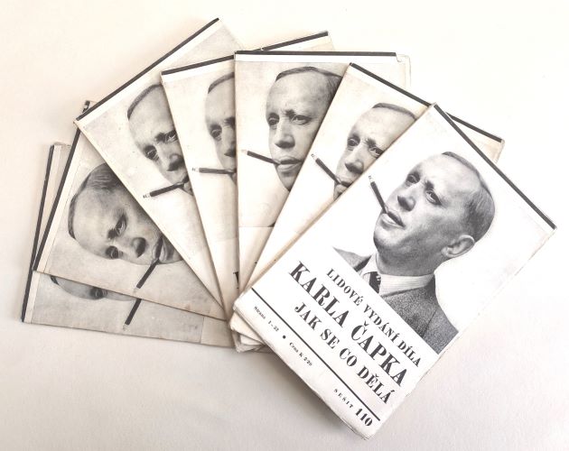 7 sešitů, komplet. - Praha, Borový, 1941. Spisy bratří Čapků sv. XLII. Sešitové vyd. (sešit 110-116). 206 s., ilustrace JOSEF ČAPEK. 7 volných sešitů v původních plátěných deskách. 195x120