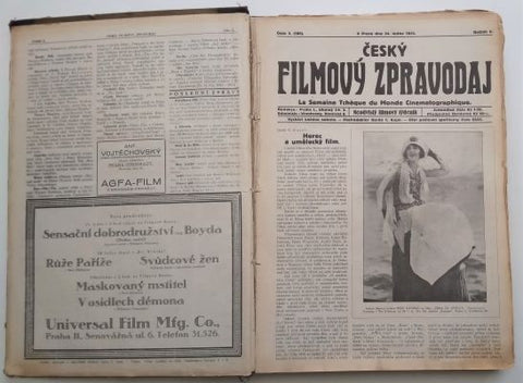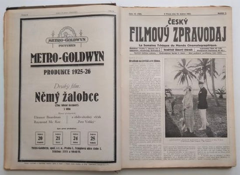 Neodvislý filmový týdeník. Ročník V., č. 1. - 52. (komplet), 1925. Majitel, vydavatel a odpovědný redaktor Quido E. Kujal, Praha, 1925. Tiskem Aloise Koníčka na Král. Vinohradech. Polopl. vazba. 370x270 Dvě obálky chybí (u dvojčísla 35/36 a u č. 49). Dobře zachováno, vazba povolená.