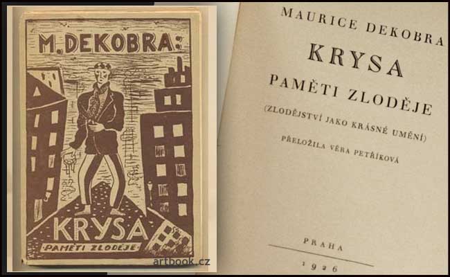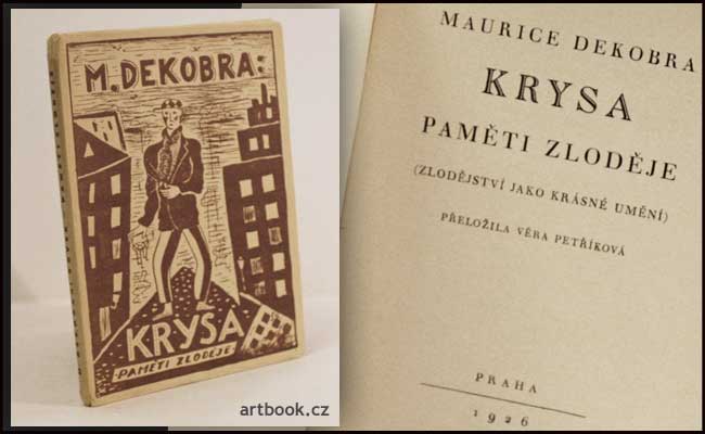 Zlodějství jako krásné umění. Praha; Dra Lad. Čelín; 1926. Edice Průlom sv. 1. Přeložila Věra Petříková. 158 s.; obálka LADISLAV SÜSS. Pův. brož. 190x135 Na hřbetě 1 cm utrženo.