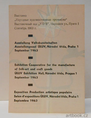 Katalog - Výstavní síň Ústředí lidové umělecké výroby Praha 1. Nestr. 30 listů včetně 3 bar. příloh. 94 čb. fotografií vystavených exponátu užitého umění a lid. um. tvorby - nábytek, textil, keramika, dřevo, svícny, lampy ad., všech 94 předmětů popsáno s uvedením autora v seznamu na konci katalogu. Redakce katalogu Vojtěch Tilkovský, úprava Josef Flejšar. Pův. pap. vazba, 180x130 Velmi dobře zachováno. /ant0923/