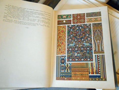 V textové části popis historických slohů a vyobrazených ornamentů, svázáno do původní celoplátěné vazby. 36x26 cm Nepoškozený, dobře zachovalý exemplář. Několik uvolněných listů je běžným projevem mohutného foliantu, provedená vazba je záměrně provedena "volně", tak, aby se kniha dala v jakémkoliv místě bez potíží otevřít.