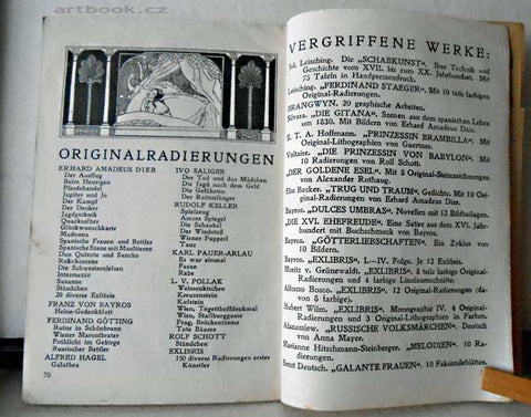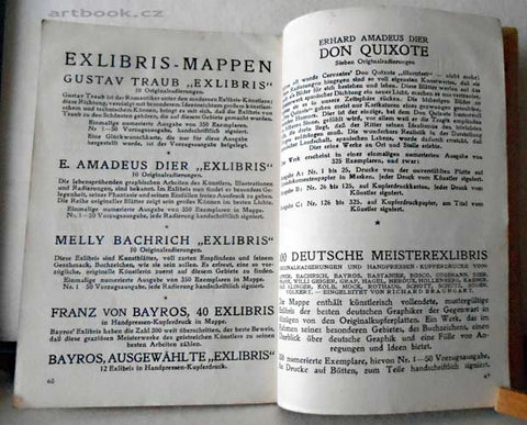 Složený leták nakladatelství, u našeho exempláře připevněn na rubu zadní obálky uvádí (k podzimu 1923) seznam 112 vydaných knih (skladem), byly to převážně bibliofilsky vypravené tituly s původními grafickými přílohami a ilustracemi od soudobých výtvarníků.