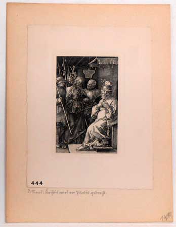Zn. v desce monogramem AD, datováno 1512. V pravém dolním rohu listu kulaté slepotiskové razítko „Reichsdruck“ vlevo číslo soupisu 444. Na rubu kulaté razítko "Facsimile-reproduction der Reichsdruckerei Berlín"
