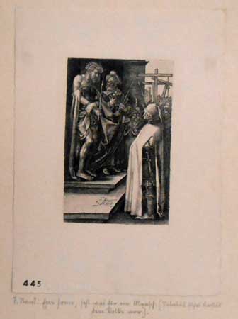 Zn. v desce monogramem AD, datováno 1512. V levém dolním rohu listu slepotiskové razítko „Reichsdruck“ a číslo soupisu 445. Na rubu kulaté razítko "Facsimile-reproduction der Reichsdruckerei Berlín"