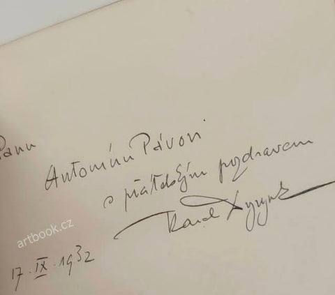 Soukromý tisk Karla Dyrynka s jeho rukopisným věnováním, podpisem, dat. 17.IX. 1932.