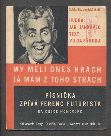 Ferenc Futurista - Píseň "Hrách". Praha, Ferry Kovařík, 1931. Noty, hudba: Jar. Jankovec, slova: Vilda Sýkora, zpíval Ferenc Futurista. Dvojlist. 165x135 Velmi dobře zachováno. /Ate/