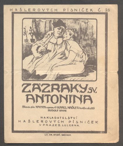 Hašlerových písniček č. 25. Praha, nakl. Hašlerových písniček, 1919. Noty. Upravil KAREL HAŠLER, složil RUDOLF HANF. Dvojlist. 180x145 Stopa po přeložení. /ate/