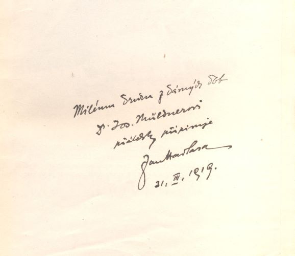 Podpis autora - Jihomořský román. Praha, Jan Havlasa, 1919. Spisy Jana Havlasy sv. 3. 166 s., 5 lepty vyzdobil LADISLAV ŠALOUN, vytiskl Alois Weisner v Praze, dedikace s podpisem Jana Havlasy, dat. 31. III. 1919. Pův. brož. 240x160 Opatřeno průhlednou folií. Velmi dobře zachováno. /Ate/