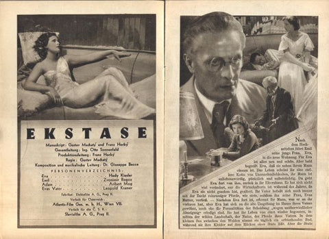 Wien, Fritz Freund, 1932. Československo / Rakousko. Režie Gustav Machatý. Hrají: Hedy Kiesler, Aribert Mog, Zvonimir Rogoz, Leopold Kramer ... 8 s. 225x150. Velmi dobře zachováno. /film/program/