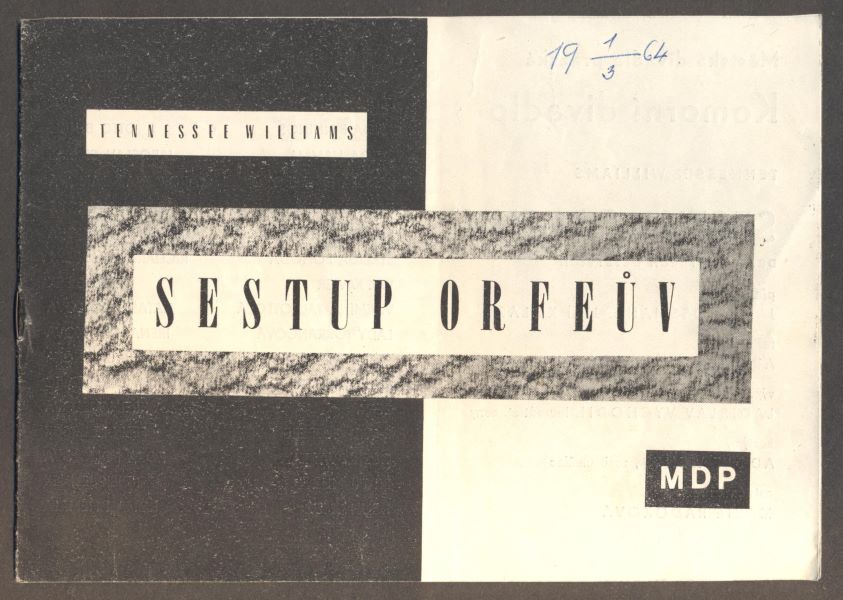 Divadelní program Městských divadel pražských č. 155. Režie: Alfred Radok. (8)s., návrh a graf. úprava Zdeněk Matoušek. Hráli: J. Adamová; J. Bek; I. Kačírková ... Pův. sešit. 150x210 Na okraji připsáno dat. shlédnutého představení "19.3.1964" /Ate/
