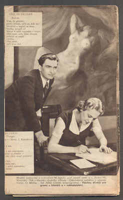 Bio-program v obrazech, číslo 655. Praha, Schulz, 1939. Režie Oldřich Kmínek. Hrají: Zita Kabátová, Zdeněk Štěpánek, Ladislav Boháč, František Smolík ... Hlubotisk. Složený arch.  230x140. - Na přední straně razítko, v přeložení mírně poškozeno jinak dobře zachováno. (viz. foto)  /film/