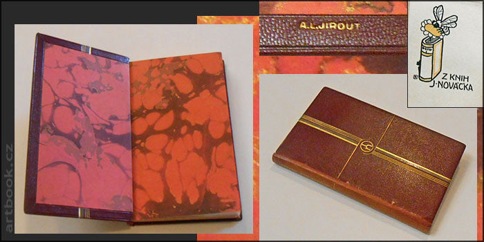 Umělecká kožená vazba A. L. JIROUT, značená na zadním přídeští.