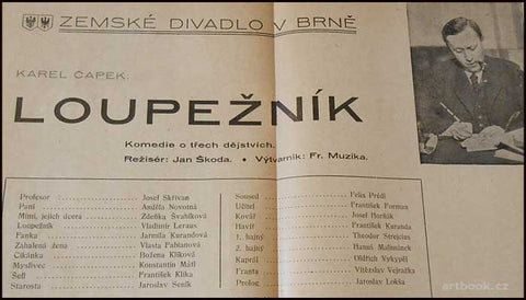 Divadelní cedule k brněnskému provedení Čapkova Loupežníka v režii Jana Škody z r. 1935.