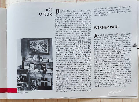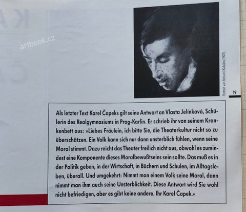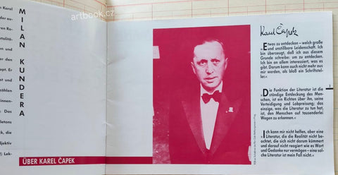 Mindelheim (Bavorsko), Verlagsgesellschaft W.P. Sachon, (1988-9). 19. s. včetně ob., dokument. fotografie, reprodukce, mj. čb. portét Karla Čapka od Bohumila Kubišty, citace a příspěvky osobností: Milan Kundera, Thomas Mann, Ferd. Peroutka, Elke Wendt-Kummer, Fr. Langer, Jiří Opelík, Paul Werner a úkázky z textů Karla Čapka.