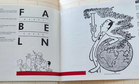 Tento nápaditý tisk na křídovém pap. a v databázích knihoven nalezené Gespräche mit Tomás Garrigue Masaryk (Sachon,1990) jsou jediné stopy z plánovaného projektu "KAREL ČAPEK - Werkausgabe".