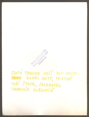 Svatá trojice naší pop-music. Fotografie z konce 60 let. 240x185 Pochází ze souboru fotografií z nichž většina byla publikována v časopise Gramorevue.