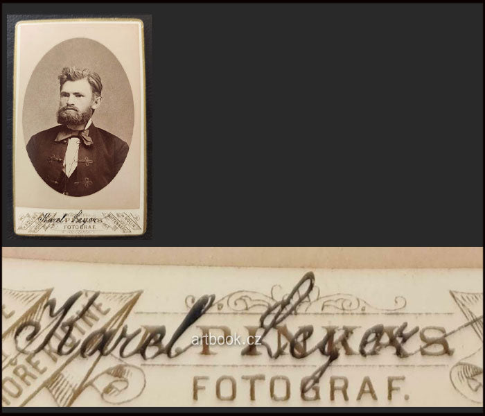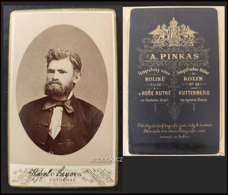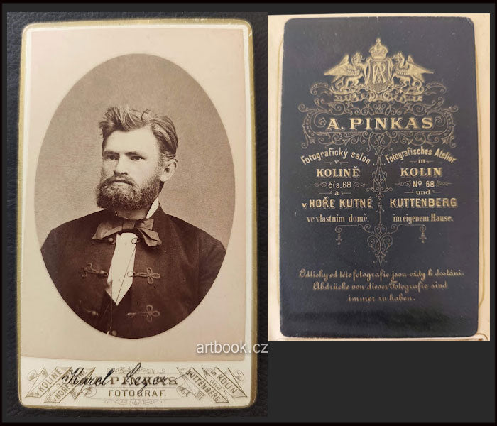 Originální dobová fotografie, Kolín, atelier A. Pinkas, kol. 1900. Vizitka /kabinetka/. 108x65 mm Pod fotografií ručně připsáno jméno spisovatele.