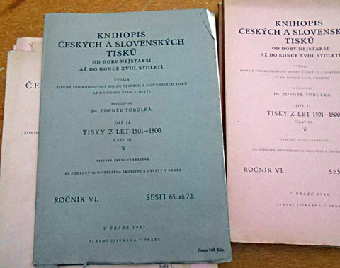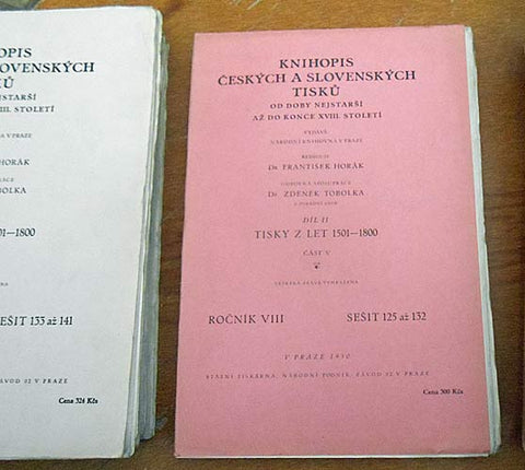 Od r. 1940 vyšlo 5 sešitů s názvem KNIHOPIS ČESKÝCH A SLOVENSKÝCH TISKŮ OD DOBY NEJSTARŠÍ AŽ DO KONCE XVIII. STOLETÍ.