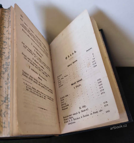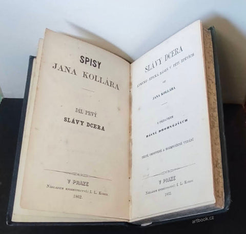 S přídavkem básní drobnějších. Třetí obnovené a rozmnožené vydání. Praha, Kober (Spisy Jana Kollára. sv. 1), 1862 Tisk Kat. Jeřábkové v Praze 1861. 428 s. Pův. celopl. vazba 175x115 Podél hřbetu plátno popraskané, na listech místy nahnědlé skvrny vlivem degradace pap.