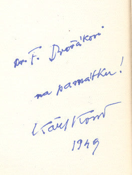 Dedikace autora Františku Dvořákovi, podpis dat. 1949.