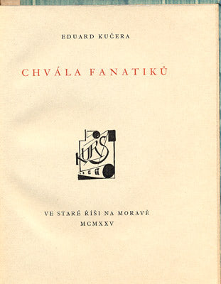 KUČERA, EDUARD: CHVÁLA FANATIKŮ. - 1925. 600 CZK = cca. 22 EUR
