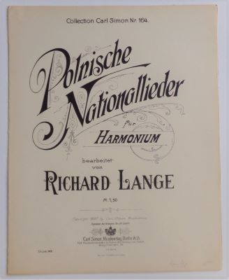 Noty. Für Harmonium. Berlin, Carl Simon, Musikverlag. Collection Carl Simon Nr. 164. 7. s. Volné dvoulisty. 340x270 Velmi dobře zachováno. /H/