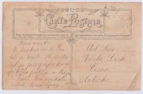 Krádež Mony Lisy - Fotomontáž na pohlednici.