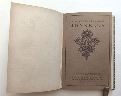 MAETERLINCK, MAURICE: JOYZELLA. Hra o pěti jednáních. Praha, Kamilla Neumannová, 1913. Knihy dobrých autorů sv. 108. Přel. Iza Liemertová. 99 s., vyzdobil MILOŠ KLICMAN. Obálka vzadu vevázaná.