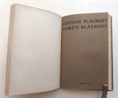 FLAUBERT, GUSTAVE: PAMĚTI BLÁZNOVY. Román. Praha, Kamilla Neumannová, (1912). Knihy dobrých autorů sv. LXXXIV . Přel. Arnošt Procházka. 73 s., titulní list pův. dřevoryt MILOŠ KLICMAN. Obálka vzadu vevázaná.