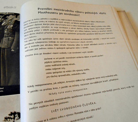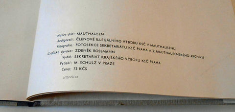 Praha, KSČ, (1946). Redigovali: členové illegálního výboru KSČ v Mauthausenu. (52) s., fotografie: fotosekce sekretariátu KSČ Praha z mauthausenského archivu, grafická úprava ZDENĚK ROSSMANN, vytiskl M. Schulz Praha (tištěno hlubotiskem). Pův. polopl. vazba s obálkou. 295x215 Obálka mírně poškozená, jinak velmi dobře zachováno. /Ant 042023/