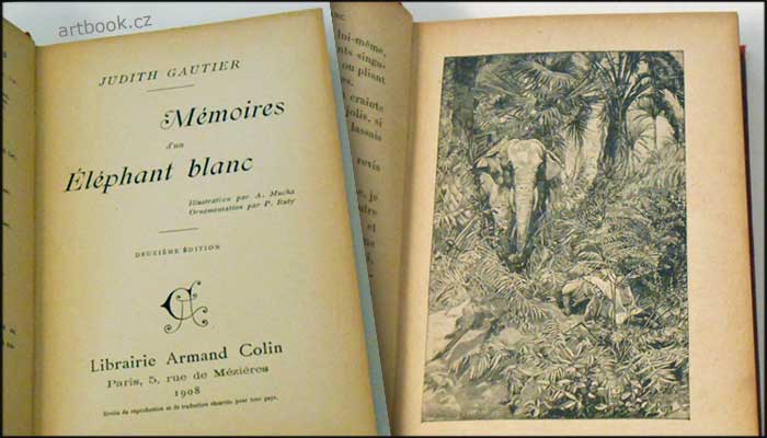 Paris, 5, rue de Mézières, Armand Colin. 1908. Bibliothèque du "Petit Français". Deuxiéme edition. 288 s., ilustrace ALFONS MUCHA (četné il. v textu a řada celostr. z nich 9 tištěno jednostranně), záhlaví kapitol a koncové viněty P. RUTY. Pův. celopl. , tlačená vazba se zlacenou ražbou přední desky a hřbetu. 180x125 Velmi dobře zachováno.