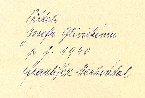 Podpis autora - Praha, Čin, 1940. Soukromý neprodejný tisk. 21 s., kresba ANTONÍN STRNADEL, dedikace s podpisem autora, dat 1940. Pův. brož. 215x140 Krásný stav. /Bezruč/H/