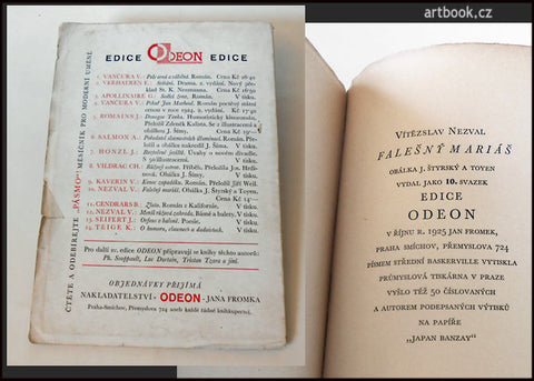 1. vyd. - Praha; Fromek; 1925. Odeon sv. 10. 93 s.; fotomont ob. ŠTYRSKÝ & TOYEN. Původní brož. 200x140 - V horním okraji titul. listu evid. záznam perem, drobné natržení zadní ob, bez ztráty, jinak čistý, velmi dobře zachovalý exemplář.