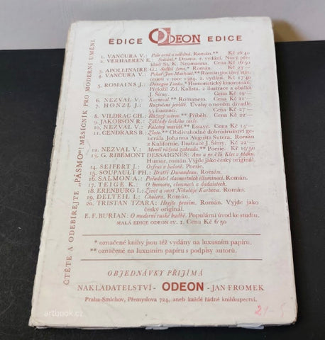 Romaneto. Praha; Fromek; 1926. Odeon sv. 6. 103 s.; obálka J. DON; titulní list TEIGE a MRKVIČKA. Pův. brož. 200x140 Velmi dobře zachováno!