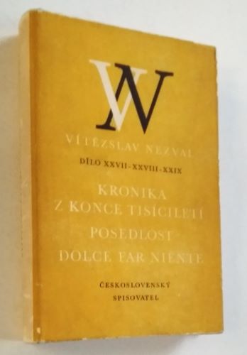 Resumé: Románová trilogie, sdružující autorovy rané práce prozaické. Kronika z konce tisíciletí je své životopisná monografie o básníkově dětství a jinošství; hudebně vzdělaný hrdina tu prožívá radost z náhlé svobody v Praze, také však radost ze styku s ženami. Posedlost je román ze šlechtického prostředí, začínající hudební skladatel spáchá sebevraždu po dvou milostných dobrodružstvích s dívkou a matkou svého přítele. Dolce far niente je román bez děje, pásmo vzpomínek z autorova dětství.
