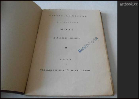 Prvotina V. Nezvala; 1. vyd. Brno; Kočí; 1922. Zajímavá knihovna; sv. 5. 74 s.; vstupní dřevoryt ARNOŠT RÁŽ; na titulním listu razítko "redakční výtisk". Pův. brož. 170x120 Velmi dobře zachováno!