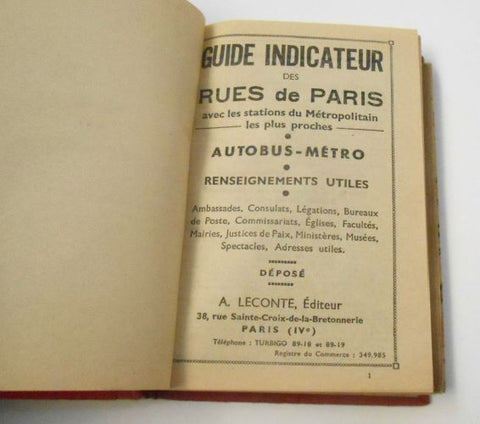 Editeur, A. Leconte, Paris, 1946. 174 s. + velký, bar., oboustranný plán Paříže, přiloženy dopravní lístky, vstupenky ad.Pův. celopl. vazba. 140x100 Dobře zachováno. /ant0724/