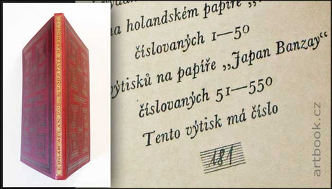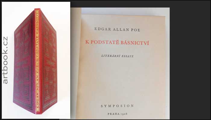 Literární essaye. Praha; Rudolf Škeřík; 1928. Symposion sv. 30. Přeložil Albert Vyskočil. 85 s.; typografická úprava KAREL NOVÁČEK; vazba HANA DOSTÁLOVÁ, ručně čísl. ex. 181 z 500 výtisků na Japan Banzay číslovaných 51 - 550, vedle toho vyšlo též 50 výtisků na Van Gelderu číslovaných 1 - 50 a blíže neudaný počet nečísl. výt. na papíře Antik. Pův. celopl. vazba s černými, tlačenými ornamenty a zlaceným tiskem titulu na hřbetě. 195x145