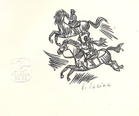 Praha, V. Pour, 1945. Pourova edice. Z ruštiny přeložil a literárně historickou poznámkou opatřil Dr. Josef Vašica. 59 s., dřevoryty vyzdobil BOHDAN LACINA, podepsáno ilustrátorem a opatřeno suchou pečetí vydavatele. Volné dvoulisty v pap. obálce. 230x145 Krásný stav. /H/