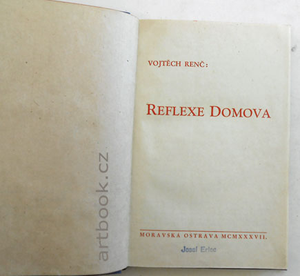 - Renč, Vojtěch. Reflexe domova: [básně]. Moravská Ostrava: Knihovna Literárního kruhu, 1937. 63, [I] s. Knihovna Literárního kruhu; [sv. 47].