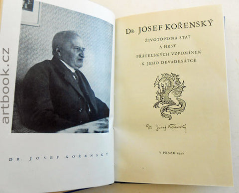 - Vavroušek, Bohumil, ed. Dr. Josef Kořenský: životopisná stať a hrst přátelských vzpomínek k jeho devadesátce. V Praze: Bohumil Vavroušek, 1937. 80, [III] s. Podpis autora na titulním listu.