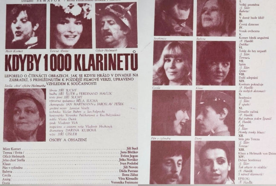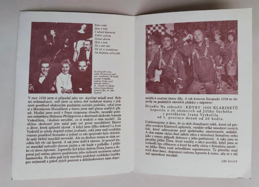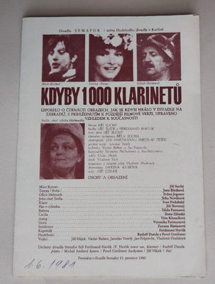 Divadelní program. Divadlo SEMAFOR / scéna Hudebního divadla v Karlíně 1980. Režie Jiří Císler. Hráli: Jiří Suchý, Dáda Patrasová, Věra Křesadlová, Veronika Freimanová, Evžen Jegorov ... Dvoulist. 205x145 Na přední straně datum shlédnutého představení.